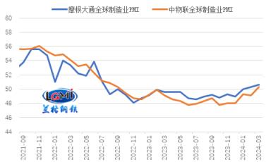 另據摩根大通數據顯示,2024年3月份,摩根大通全球制造業PMI指數為50.6%,較上月回升0.3個百分點;其中,產出指數、新訂單指數在擴張區間繼續回升,其中,產出指數較上月回升0.7個百分點,至51.9%;新訂單指數較上月回升0.5個百分點,至50.9%。2024年3月份監測的20個全球主要國家和地區制造業PMI指數中有10個國家制造業PMI處于50%以上,與上月持平;有11個國家及地區制造業PMI指數較上月有所回升,占比達55%,較上月下滑15個百分點,反映全球制造業恢復態勢有所分化。