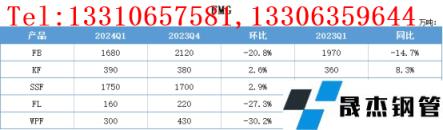 FB第一季度產量1680噸,環比下降20.8%,同比下降14.7%;KF第一季度產量390噸,環比上升2.6%,同比上升8.3%;SSF第一季度產量1750噸,環比上升2.9%,同比上升6.7%;FL第一季度產量160噸,環比下降27.3%,同比下降27.3%;WPF第一季度產量300噸,環比下降30.2%,同比下降31.8%.