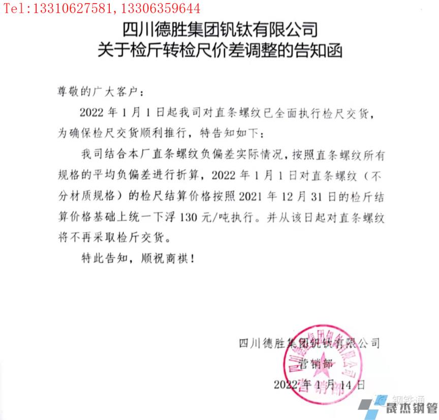 免責聲明:本網站(山東聊城晟杰無縫鋼管廠www.hanoilittle.com)刊載的“四川多家鋼企發布檢斤轉檢尺價差調整通知”等均源于網絡,版權歸原作者所有,且僅代表原作者觀點,本文所載信息僅供參考。轉載僅為學習與交流之目的,如無意中侵犯您的合法權益,請及時聯系刪除。本網站刊登此篇文章并不意味著本站贊同其觀點或證實其內容的真實性,我們不對其科學性、嚴肅性等作任何形式的保證。如果侵犯了您的版權,請盡快聯系我們予以撤銷,謝謝合作!