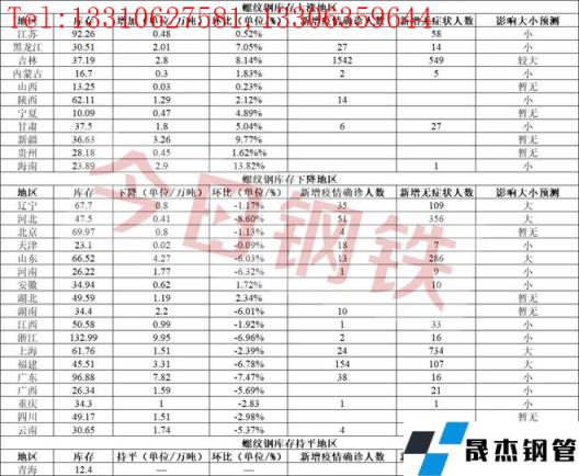 通過以上信息,小編了解到目前全國重點鋼鐵區域例如唐山大部分鋼企維持生產,但因交通管制,無縫鋼管廠家目前出貨面臨運輸困難;針對全國還有一些重點省市無縫鋼管廠家也受到了影響情況如下: