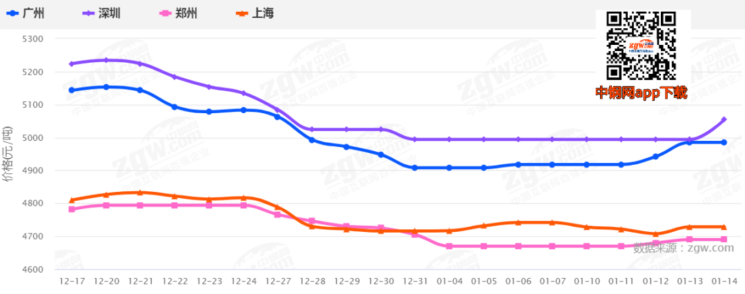 截至1月14日,全國(guó)237家流通商周均成交量11.92萬(wàn)噸,周均成交量環(huán)比減少2.84萬(wàn)噸,減幅為19.24%。據(jù)不完全統(tǒng)計(jì),40家電弧爐獨(dú)立建筑鋼材生產(chǎn)的鋼廠中,已有25家停產(chǎn),占62.5%。其中,1月1日前停產(chǎn)的鋼廠占24%,而1月1日至1月10日停產(chǎn)的鋼廠占60%,處于鋼廠集中停產(chǎn)階段。根據(jù)市場(chǎng)收集的信息來(lái)看,獨(dú)立電弧爐建筑鋼材鋼廠平均成本4817元/噸,周環(huán)比上升93元/噸。當(dāng)前電弧爐鋼廠虧損嚴(yán)重,尤其是飽和生產(chǎn)的情況下,噸鋼虧損超百元。