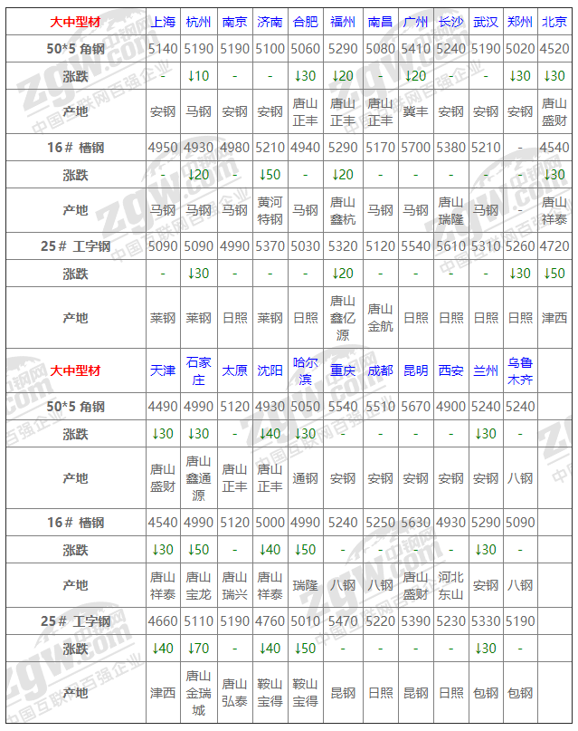 全國23個主要市場50*5 角鋼平均價格5135元/噸,較上個交易日下調13元/噸。