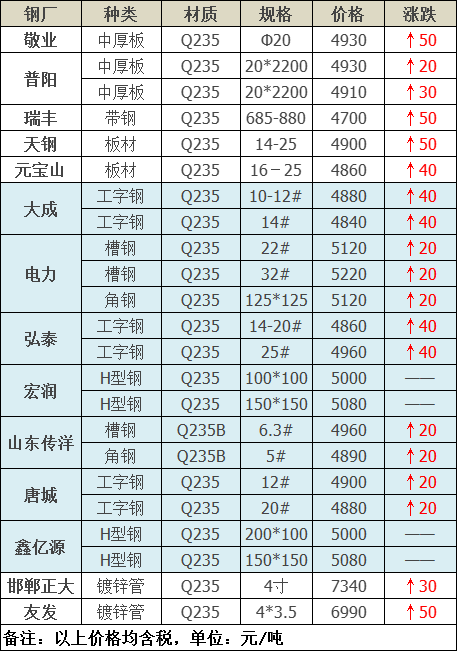 上調(diào)12家,占比85.7%,調(diào)價幅度20-50元/噸;