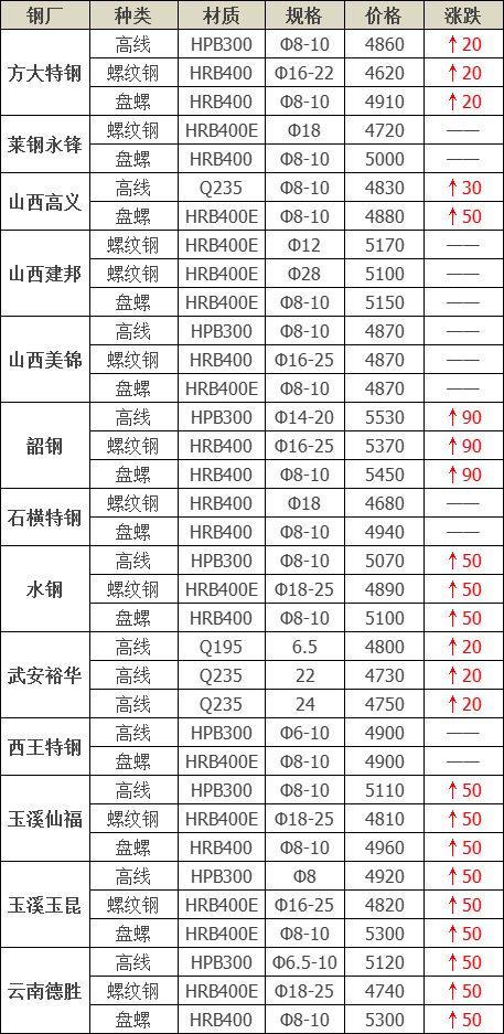 上調(diào)20家,占比74%,調(diào)價幅度20-90元/噸,