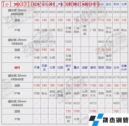 免責聲明:本網站(山東聊城晟杰無縫鋼管廠www.hanoilittle.com)刊載的“2月8日全國鋼材_無縫鋼管實時價格!”等均源于網絡,版權歸原作者所有,且僅代表原作者觀點,本文所載信息僅供參考。轉載僅為學習與交流之目的,如無意中侵犯您的合法權益,請及時聯系刪除。本網站刊登此篇文章并不意味著本站贊同其觀點或證實其內容的真實性,我們不對其科學性、嚴肅性等作任何形式的保證。如果侵犯了您的版權,請盡快聯系我們予以撤銷,謝謝合作!