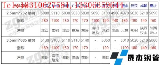 全國12個主要市場2.5mm*232 帶鋼平均價格5061元/噸,較上個交易日上調66元/噸。