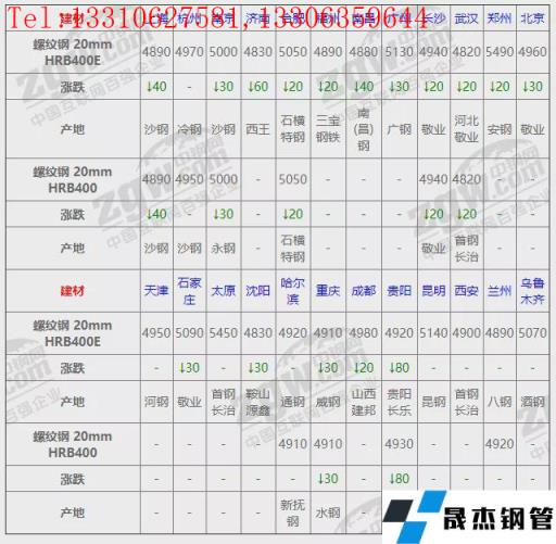 免責聲明:本網站(山東聊城晟杰無縫鋼管廠www.hanoilittle.com)刊載的“2月14日全國鋼材_無縫鋼管實時價格!”等均源于網絡,版權歸原作者所有,且僅代表原作者觀點,本文所載信息僅供參考。轉載僅為學習與交流之目的,如無意中侵犯您的合法權益,請及時聯系刪除。本網站刊登此篇文章并不意味著本站贊同其觀點或證實其內容的真實性,我們不對其科學性、嚴肅性等作任何形式的保證。如果侵犯了您的版權,請盡快聯系我們予以撤銷,謝謝合作!