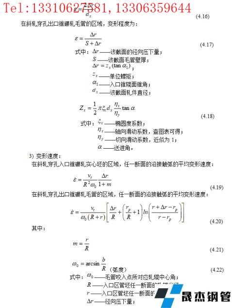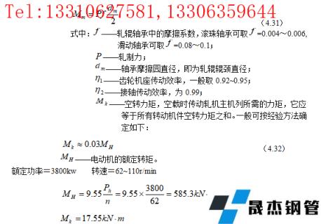 免責聲明:本網站(山東聊城晟杰無縫鋼管廠www.hanoilittle.com)刊載的“4.9 力能參數的計算(厚壁鋼管軋制)”等均源于網絡,版權歸原作者所有,且僅代表原作者觀點,本文所載信息僅供參考。轉載僅為學習與交流之目的,如無意中侵犯您的合法權益,請及時聯系刪除。本網站刊登此篇文章并不意味著本站贊同其觀點或證實其內容的真實性,我們不對其科學性、嚴肅性等作任何形式的保證。如果侵犯了您的版權,請盡快聯系我們予以撤銷,謝謝合作!