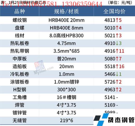 中厚板:1月25日,全國(guó)24個(gè)主要城市20mm普板均價(jià)5080元/噸,較上個(gè)交易日上漲7元/噸。據(jù)了解,受臨近春節(jié)影響,多地物流車(chē)輛減量、運(yùn)力下降、運(yùn)費(fèi)上漲,同時(shí),市場(chǎng)上商戶陸續(xù)放假,成交減量,多地進(jìn)入有價(jià)無(wú)市狀態(tài)。受華北地區(qū)部分無(wú)縫鋼管廠檢修停產(chǎn)影響,市場(chǎng)節(jié)后預(yù)期較好,多地仍在小幅上調(diào)報(bào)價(jià);其他區(qū)域報(bào)價(jià)以穩(wěn)為主。綜合來(lái)看,預(yù)計(jì)節(jié)前國(guó)內(nèi)中厚板報(bào)價(jià)短期繼續(xù)盤(pán)整運(yùn)行。