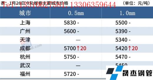冷軋板卷:1月26日,全國24個主要城市1.0mm冷卷均價5468元/噸,較上個交易日上漲2元/噸。市場上中小戶基本已放假,僅剩國企及部分大戶在崗。下游前兩日就開始休假,市場運輸車輛稀疏,處于有價無市的局面之中。據貿易商反饋,現貨市場基本處于休市狀態,年前價格將以穩為主。綜合來看,故預計27日國內冷軋板卷價格或將持穩運行。