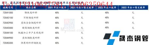 2022年我國對廢鋼進出口的稅率將維持2021年的政策不變(表1、表2)。出口方面,依舊維持40%的出口關稅且沒有退稅優惠,預計2022年我國廢鋼出口也難有大的增量;進口方面,零關稅的進口政策對再生鋼鐵料進口的擴大恐將有限,一方面由于進口政策較為嚴格,僅鼓勵進口優質的再生鋼鐵料,優質再生鋼鐵料進口價差的倒掛在短期內或難以逆轉;另一方面,由于世界各國發展綠色低碳經濟的競爭加劇,像歐盟、東南亞的一些國家已經出臺有限制廢鋼資源出口的禁令,后期不排除像日本這樣的發達經濟體可能也會出臺類似的禁令,屆時我國廢鋼進口的阻力或將更大。