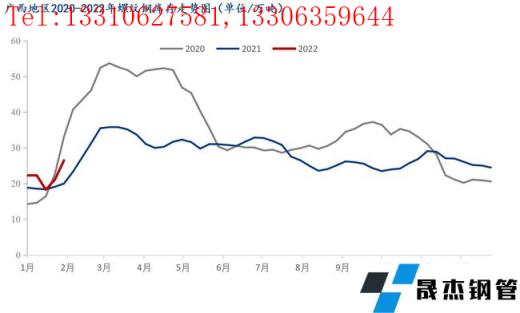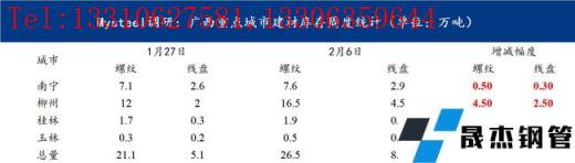 本周廣西建筑厚壁無縫鋼管價(jià)格小幅上漲,較節(jié)前上漲80元/噸。春節(jié)期間由于需求停滯,貿(mào)易商提貨較少,多數(shù)滯留在廠內(nèi),因而社庫庫存整體增加幅度較往年有所降低。商家整體心態(tài)尚可,對后市觀望情緒濃厚。截至昨日(正月初六)據(jù)我網(wǎng)跟蹤調(diào)研統(tǒng)計(jì),廣西市場庫存建筑厚壁無縫鋼管34.6萬噸,較節(jié)前相比增加8.4萬噸,較去年節(jié)后同期相比減少5.9萬噸。從區(qū)域數(shù)據(jù)來看,南寧市場主要庫存資源為桂萬鋼,其商戶資源多數(shù)在廠內(nèi),只要節(jié)前零星商戶的資源到本倉庫,以及有云南材等資源,因而整體增加了0.8萬噸;而柳州市場由于柳鋼資源多數(shù)都會(huì)發(fā)往物流園,因而資源相對增加幅度較高,較春節(jié)前增加7萬噸。從整體庫存來看,廠家和社會(huì)庫存壓力尚在,但是隨著后期需求的釋放,或?qū)⒂兴徑猓唐诒镜厥袌鰞r(jià)格或?qū)⒗^續(xù)面臨小幅上漲。