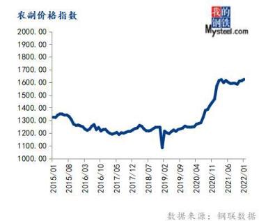 1月份農(nóng)副價(jià)格指數(shù)為1623.13,環(huán)比上漲0.54%,同比上漲3.28%。