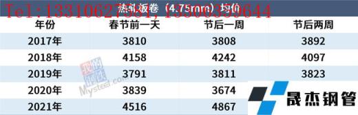 免責聲明:本網站(山東聊城晟杰無縫鋼管廠www.hanoilittle.com)刊載的“近5年春節前后全國鋼材_無縫鋼管市場走勢”等均源于網絡,版權歸原作者所有,且僅代表原作者觀點,本文所載信息僅供參考。轉載僅為學習與交流之目的,如無意中侵犯您的合法權益,請及時聯系刪除。本網站刊登此篇文章并不意味著本站贊同其觀點或證實其內容的真實性,我們不對其科學性、嚴肅性等作任何形式的保證。如果侵犯了您的版權,請盡快聯系我們予以撤銷,謝謝合作!