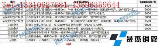 我網(wǎng)前兩日發(fā)布消息“河南、山東及河北唐山地區(qū)部分無縫厚壁鋼管廠家接到臨時限產(chǎn)加嚴(yán)通知。會在原有限產(chǎn)基礎(chǔ)上燒結(jié)全停,個別無縫厚壁鋼管廠家有新增高爐檢修,2月8日下午18點(diǎn)開始執(zhí)行,預(yù)計(jì)11日解除?!睂Υ?,我網(wǎng)進(jìn)行了進(jìn)一步調(diào)研,山西部分區(qū)域也受之影響進(jìn)行燜爐,具體情況如下: