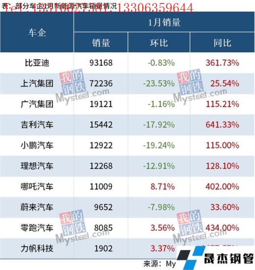 免責聲明:本網站(山東聊城晟杰無縫鋼管廠www.hanoilittle.com)刊載的“1月10家車企新能源汽車銷量同比大增”等均源于網絡,版權歸原作者所有,且僅代表原作者觀點,本文所載信息僅供參考。轉載僅為學習與交流之目的,如無意中侵犯您的合法權益,請及時聯系刪除。本網站刊登此篇文章并不意味著本站贊同其觀點或證實其內容的真實性,我們不對其科學性、嚴肅性等作任何形式的保證。如果侵犯了您的版權,請盡快聯系我們予以撤銷,謝謝合作!