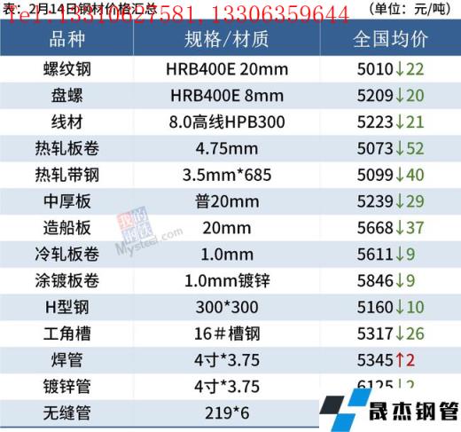 建筑厚壁無縫鋼管:2月14日,全國31個主要城市20mm三級抗震螺紋鋼均價5010元/噸,較上個交易日下跌22元/噸。終端陸續(xù)開工,采購量較少,投機性需求寥寥無幾,全天成交表現(xiàn)較差。短期來看,受原料端拖累,期螺走弱,帶動市場避險情緒升溫,市場套現(xiàn)需求增加,不過整體需求偏弱。預(yù)計15日國內(nèi)建筑厚壁無縫鋼管價格或?qū)⒗^續(xù)趨弱為主。