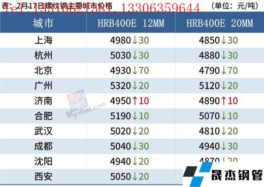 建筑厚壁無縫鋼管:2月17日,全國31個主要城市20mm三級抗震螺紋鋼均價4937元/噸,較上個交易日下跌21元/噸。本周螺紋鋼產量邊際回升,廠庫下降,但社庫增幅明顯,不過本周表觀消費量繼續回升,說明需求端邊際向好。短期來看,由于當前需求并未完全釋放,短期市場運行邏輯仍然是情緒面驅動,原料承壓對于現貨仍有一定拖累。因此預計18日國內建筑厚壁無縫鋼管價格或將繼續趨弱。