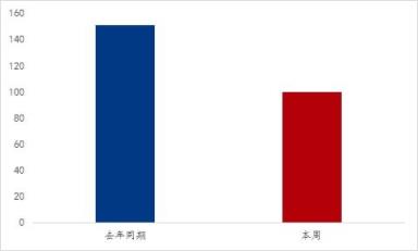 圖2:本周山東市場(chǎng)建筑厚壁無(wú)縫鋼管社會(huì)庫(kù)存年同比變化情況