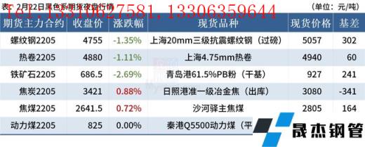 ◎2月22日,全國主港鐵礦石成交72.00萬噸,環(huán)比減25.8%;237家主流貿(mào)易商建材成交9.51萬噸,環(huán)比減39.4%。