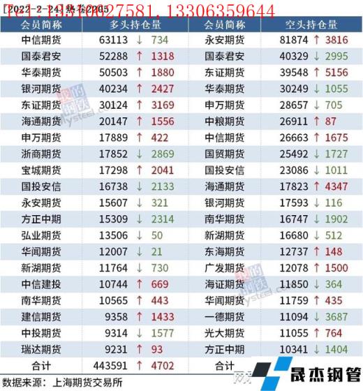 截至2月24日收盤,螺紋鋼2205收4637元/噸,跌2.89%;熱卷2205收4804元/噸,跌1.94%;鐵礦石2205收703元/噸,漲0.43%。