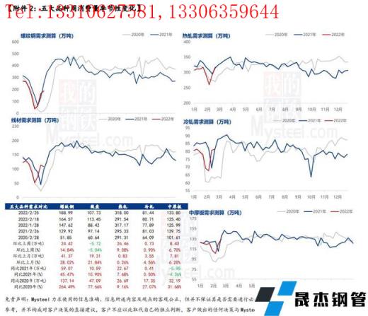 本周五大品種供應均有明顯回升,分品種來看,建材增量集中于短流程生產企業,原因在于上周元宵節過后短流程復產比例提升,增量區域集中于華東、華南和西南;板材增量集中于長流程生產企業,原因在于冬奧會結束,部分板材企業鐵水逐步恢復,促使軋材增量。綜合來看,原料趨弱運行導致成品材成本下移,擴寬企業利潤空間,一定程度上提振了企業復產積極性。預計后期供應仍有一定增量空間,但受限于冬奧會后還有殘奧會,因此空間相對有限。