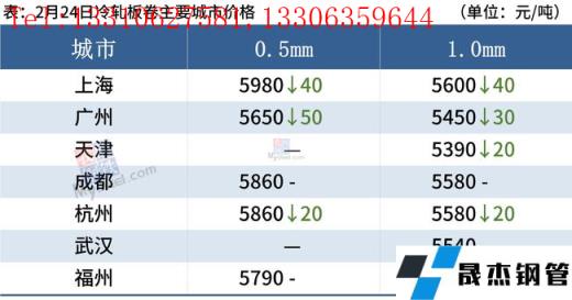 冷軋板卷:2月24日,全國24個主要城市1.0mm冷卷均價5565元/噸,較上個交易日下跌10元/噸。黑色系期貨盤面整體偏弱運行,多數商家觀望情緒濃厚,成交表現偏差。部分地區貿易商表示,目前庫存仍處于較高位,基于3月份訂貨壓力,市場價格普遍存在議價空間。庫存方面,據不完全統計,現冷軋無縫厚壁鋼管廠家庫存38.86萬噸,周環比減少2.08萬噸,社會庫存144.27萬噸,周環比增加2.24萬噸,周消費量81.60萬噸,環比增加0.8萬噸。綜合來看,故預計25日國內冷軋板卷價格或將穩中偏弱運行。