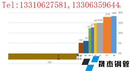 從全球粗鋼產量前10名國家和地區的增長速度情況看,美國、印度的增長速度最快,分別達到了18.3%和17.8%;日本、巴西、土耳其和德國分別增長14.9%、14.7%、12.7%和12.3%;俄羅斯和韓國分別增長6.1%和5.2%;中國和伊朗分別下降3.0%和1.8%。