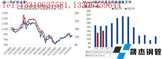 回顧2月鐵礦基本面情況,遠(yuǎn)期供應(yīng)端2月份全球鐵礦石發(fā)運(yùn)量受到澳大利亞的泊位檢修和巴西的持續(xù)降雨影響下降,較1月減少2186萬噸至1.02億噸;近端供應(yīng)由于前期發(fā)運(yùn)偏低,2月份中國(guó)45鐵礦石到港量同步回落。需求方面,2月高爐鐵水產(chǎn)量在冬奧會(huì)期間嚴(yán)格限產(chǎn)的影響下先降后增,整體較1月下降。鐵礦石供需兩端雙降,但是供應(yīng)降幅更大,供需差從1月的1200萬噸收窄至311萬噸,但仍不改供大于求的局面。體現(xiàn)到庫存端,2月港口庫存月環(huán)比累庫577萬噸,在港船舶減少了44條,因此2月鐵礦石基本面矛盾較小,對(duì)礦價(jià)并無支撐作用。此外,冬奧會(huì)限產(chǎn)嚴(yán)格疊加春節(jié)期間無縫厚壁鋼管廠家消耗自有庫存為主,無縫厚壁鋼管廠家需求低迷下礦價(jià)下行壓力較大,同時(shí)2月政府對(duì)價(jià)格監(jiān)管力度加強(qiáng)抑制部分投機(jī)需求,因此2月整體礦價(jià)震蕩下行。