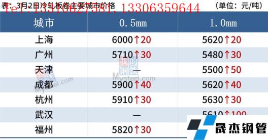 冷軋板卷:3月2日,全國24個主要城市1.0mm冷卷均價5602元/噸,較上個交易日上漲30元/噸。期貨上漲為主,商家心態(tài)樂觀為主。下游方面,下游開工情況有所好轉(zhuǎn),補庫意愿偏強,采購積極性有所提振。商家整體出貨情況一般。綜上所述,預(yù)計3日冷軋價格或?qū)⒄鹗幤珡娺\行。
