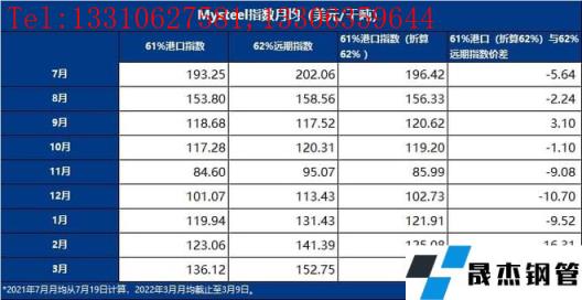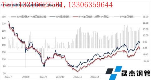 近期,鐵礦石遠期現貨市場和港口現貨市場存在明顯的價格倒掛現象,許多市場參與者也開始更多關注港口現貨價格指數,鐵礦石指數部最近也接到多家無縫厚壁鋼管廠家和貿易商詢問61%港口指數的一些基本情況,以及其與目前礦山定價使用的62%澳粉遠期現貨價格指數(以下簡稱“62%遠期指數”)的差異。