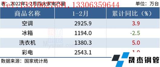 免責聲明:本網站(山東聊城晟杰無縫鋼管廠www.hanoilittle.com)刊載的“統計局:1-2月中國四大家電產量3增1降”等均源于網絡,版權歸原作者所有,且僅代表原作者觀點,本文所載信息僅供參考。轉載僅為學習與交流之目的,如無意中侵犯您的合法權益,請及時聯系刪除。本網站刊登此篇文章并不意味著本站贊同其觀點或證實其內容的真實性,我們不對其科學性、嚴肅性等作任何形式的保證。如果侵犯了您的版權,請盡快聯系我們予以撤銷,謝謝合作!