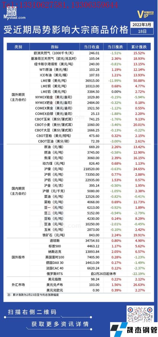 免責(zé)聲明:本網(wǎng)站(山東聊城晟杰無縫鋼管廠www.hanoilittle.com)刊載的“受近期局勢影響大宗商品價格一覽表(3月18日)”等均源于網(wǎng)絡(luò),版權(quán)歸原作者所有,且僅代表原作者觀點,本文所載信息僅供參考。轉(zhuǎn)載僅為學(xué)習(xí)與交流之目的,如無意中侵犯您的合法權(quán)益,請及時聯(lián)系刪除。本網(wǎng)站刊登此篇文章并不意味著本站贊同其觀點或證實其內(nèi)容的真實性,我們不對其科學(xué)性、嚴(yán)肅性等作任何形式的保證。如果侵犯了您的版權(quán),請盡快聯(lián)系我們予以撤銷,謝謝合作!