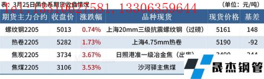 免責聲明:本網站(山東聊城晟杰無縫鋼管廠www.hanoilittle.com)刊載的“2022年03月25日晚餐:東北建材社庫創3年新高,國內外鋼材_無縫鋼管價差明顯擴大”等均源于網絡,版權歸原作者所有,且僅代表原作者觀點,本文所載信息僅供參考。轉載僅為學習與交流之目的,如無意中侵犯您的合法權益,請及時聯系刪除。本網站刊登此篇文章并不意味著本站贊同其觀點或證實其內容的真實性,我們不對其科學性、嚴肅性等作任何形式的保證。如果侵犯了您的版權,請盡快聯系我們予以撤銷,謝謝合作!