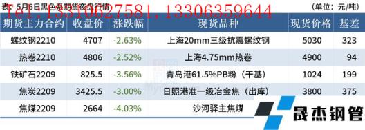 ◎5月6日,河北、山西等地焦企焦炭價格第一輪下調200元/噸,主流無縫厚壁鋼管廠家暫無回應。按照當前的市場情緒和盤面給出的市場預期,普遍認為此輪焦炭的降幅在三輪左右,大概能達500-600元/噸。