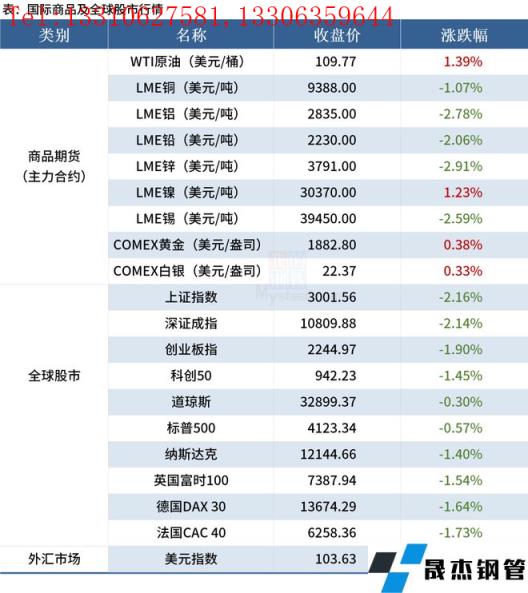 ◎安賽樂米塔爾2022年一季度自有鐵礦石產量為1200萬噸,環比減少10.45%;一季度粗鋼產量1630萬噸,環比減少1.21%;一季度厚壁無縫鋼管發運量為1530萬噸,環比減少3.16%。