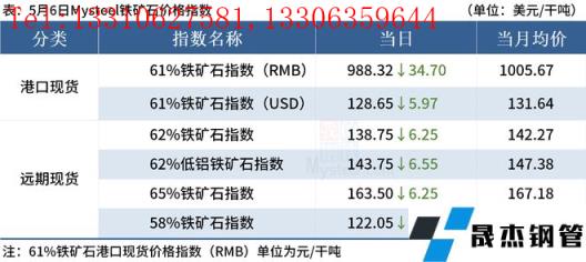 ◎5月6日,全國主港鐵礦石成交68.50萬噸,環比減26.7%;237家主流貿易商建材成交14.17萬噸,環比減29.7%。
