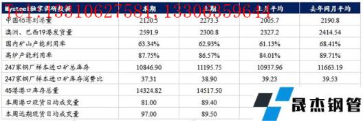 本周統(tǒng)計(jì)中國45港鐵礦石庫存總量14324.82萬噸,環(huán)比降庫192.68萬噸。日均疏港量315.66萬噸,環(huán)比增17.88萬噸。目前在港船舶數(shù)89條較上期降20條。統(tǒng)計(jì)47港鐵礦石庫存總量14922.82萬噸,47港日均疏港量325.06萬噸。