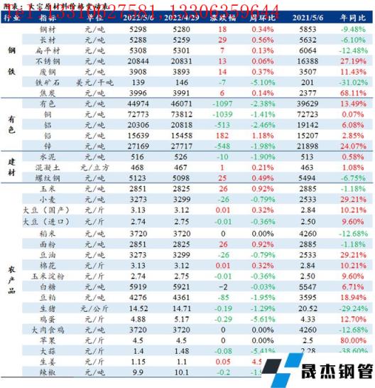 免責聲明:本網站(山東聊城晟杰無縫鋼管廠www.hanoilittle.com)刊載的“周報:大宗工業原材料、能源及農產品價格周報(4.29-5.06)”等均源于網絡,版權歸原作者所有,且僅代表原作者觀點,本文所載信息僅供參考。轉載僅為學習與交流之目的,如無意中侵犯您的合法權益,請及時聯系刪除。本網站刊登此篇文章并不意味著本站贊同其觀點或證實其內容的真實性,我們不對其科學性、嚴肅性等作任何形式的保證。如果侵犯了您的版權,請盡快聯系我們予以撤銷,謝謝合作!