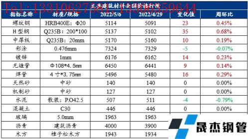 免責(zé)聲明:本網(wǎng)站(山東聊城晟杰無(wú)縫鋼管廠www.hanoilittle.com)刊載的“建筑原材料周報(bào)(4.29-5.6)”等均源于網(wǎng)絡(luò),版權(quán)歸原作者所有,且僅代表原作者觀點(diǎn),本文所載信息僅供參考。轉(zhuǎn)載僅為學(xué)習(xí)與交流之目的,如無(wú)意中侵犯您的合法權(quán)益,請(qǐng)及時(shí)聯(lián)系刪除。本網(wǎng)站刊登此篇文章并不意味著本站贊同其觀點(diǎn)或證實(shí)其內(nèi)容的真實(shí)性,我們不對(duì)其科學(xué)性、嚴(yán)肅性等作任何形式的保證。如果侵犯了您的版權(quán),請(qǐng)盡快聯(lián)系我們予以撤銷,謝謝合作!