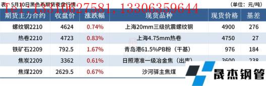 ◎ 5月10日焦炭市場偏弱運行,部分無縫厚壁鋼管廠家開啟第二輪降價,降幅為200元/噸,主流無縫厚壁鋼管廠家暫觀望為主。焦炭開工小幅微增,場內(nèi)基本零庫存運行,即產(chǎn)即銷,多以積極出貨為主。