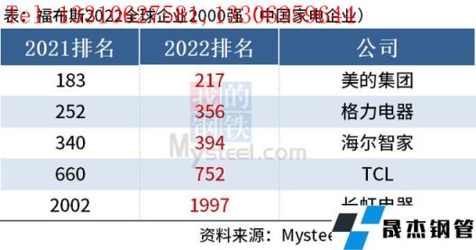 免責聲明:本網站(山東聊城晟杰無縫鋼管廠www.hanoilittle.com)刊載的“中國5家家電企業上榜福布斯2022全球企業2000強”等均源于網絡,版權歸原作者所有,且僅代表原作者觀點,本文所載信息僅供參考。轉載僅為學習與交流之目的,如無意中侵犯您的合法權益,請及時聯系刪除。本網站刊登此篇文章并不意味著本站贊同其觀點或證實其內容的真實性,我們不對其科學性、嚴肅性等作任何形式的保證。如果侵犯了您的版權,請盡快聯系我們予以撤銷,謝謝合作!