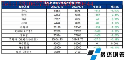 免責聲明:本網站(山東聊城晟杰無縫鋼管廠www.hanoilittle.com)刊載的“家電原材料周報(5.9-5.13)”等均源于網絡,版權歸原作者所有,且僅代表原作者觀點,本文所載信息僅供參考。轉載僅為學習與交流之目的,如無意中侵犯您的合法權益,請及時聯系刪除。本網站刊登此篇文章并不意味著本站贊同其觀點或證實其內容的真實性,我們不對其科學性、嚴肅性等作任何形式的保證。如果侵犯了您的版權,請盡快聯系我們予以撤銷,謝謝合作!
