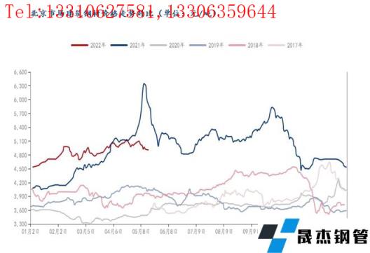 自四月下旬疫情在北京小范圍蔓延以來,京津冀建筑厚壁無縫鋼管價格震蕩趨弱運行。回顧北京市場今年的價格情況, 2月:需求提前收尾,生產(chǎn)節(jié)奏緩慢, 成本支持較高,價格小幅探漲30元/噸;3月:原料價格大漲,產(chǎn)量繼續(xù)縮減,庫存小幅去化,價格大幅走強220元/噸;4月,利好政策頻出,成本支撐較強,疫情反復影響,庫存去化受阻,價格上漲動力不強,僅趨強70元/噸。