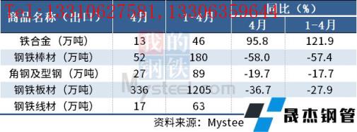 免責聲明:本網站(山東聊城晟杰無縫鋼管廠www.hanoilittle.com)刊載的“海關總署:4月中國出口板材336萬噸,同比降36.7%”等均源于網絡,版權歸原作者所有,且僅代表原作者觀點,本文所載信息僅供參考。轉載僅為學習與交流之目的,如無意中侵犯您的合法權益,請及時聯系刪除。本網站刊登此篇文章并不意味著本站贊同其觀點或證實其內容的真實性,我們不對其科學性、嚴肅性等作任何形式的保證。如果侵犯了您的版權,請盡快聯系我們予以撤銷,謝謝合作!
