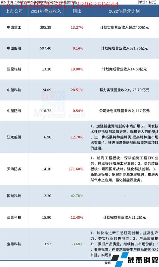 10大上市船企2022年經(jīng)營計劃以及2021年船舶類業(yè)務(wù)完成具體情況如下: