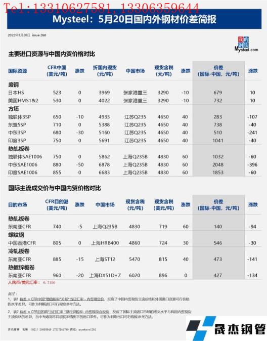 免責(zé)聲明:本網(wǎng)站(山東聊城晟杰無縫鋼管廠www.hanoilittle.com)刊載的“2022年05月20日日?qǐng)?bào):國(guó)內(nèi)外鋼材_無縫鋼管價(jià)差匯總(2022.5.20)”等均源于網(wǎng)絡(luò),版權(quán)歸原作者所有,且僅代表原作者觀點(diǎn),本文所載信息僅供參考。轉(zhuǎn)載僅為學(xué)習(xí)與交流之目的,如無意中侵犯您的合法權(quán)益,請(qǐng)及時(shí)聯(lián)系刪除。本網(wǎng)站刊登此篇文章并不意味著本站贊同其觀點(diǎn)或證實(shí)其內(nèi)容的真實(shí)性,我們不對(duì)其科學(xué)性、嚴(yán)肅性等作任何形式的保證。如果侵犯了您的版權(quán),請(qǐng)盡快聯(lián)系我們予以撤銷,謝謝合作!