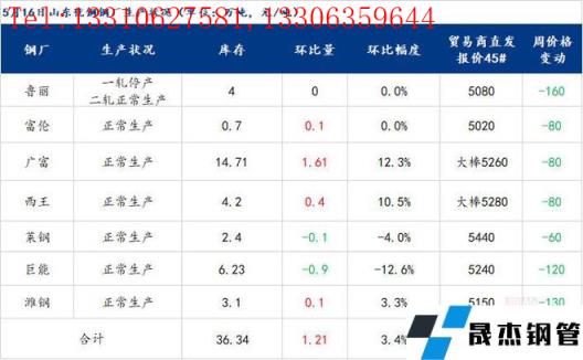山東優(yōu)特?zé)o縫厚壁鋼管廠家?guī)齑?4.95萬噸,環(huán)比下降1.39萬噸,降幅3.82%,同比增加14.04萬噸,增幅67.14%。生產(chǎn)方面:魯麗一軋停產(chǎn),二軋正常生產(chǎn);臨沂江泉停產(chǎn)。