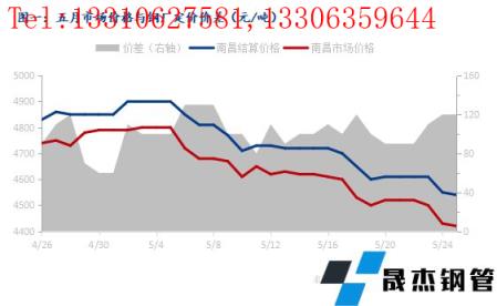 5月份南昌建筑厚壁無縫鋼管市場價格一路下行,具體來看,4月26日至5月25日期間南昌建筑厚壁無縫鋼管現(xiàn)貨市場最高價格為4800元/噸,最低價格為4420元/噸,較上月最高價與最低價分別下降70元/噸和300元/噸,期間市場價格單邊下行振幅為380元/噸。