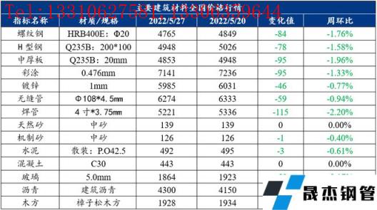 免責聲明:本網站(山東聊城晟杰無縫鋼管廠www.hanoilittle.com)刊載的“建筑原材料周報(5.23-5.27)”等均源于網絡,版權歸原作者所有,且僅代表原作者觀點,本文所載信息僅供參考。轉載僅為學習與交流之目的,如無意中侵犯您的合法權益,請及時聯系刪除。本網站刊登此篇文章并不意味著本站贊同其觀點或證實其內容的真實性,我們不對其科學性、嚴肅性等作任何形式的保證。如果侵犯了您的版權,請盡快聯系我們予以撤銷,謝謝合作!